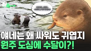 낮에 포착된 수달 가족?…귀여움 한도초과⚠️