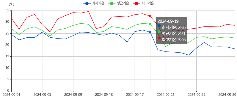 북쪽 상공에서 차가운 공기가 내려오거나 태풍, 가을장마의 영향으로 비가 많이 내리기도 해 9월에는 평균적으로 날씨가 선선해지기 시작합니다.