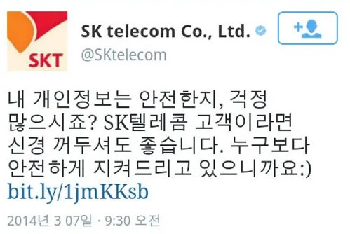 이에 SK텔레콤이 트위터에 "SK텔레콤 고객이라면 신경 꺼두셔도 좋습니다"라는 글을 트위터에 올려 논란이 된 바 있습니다.