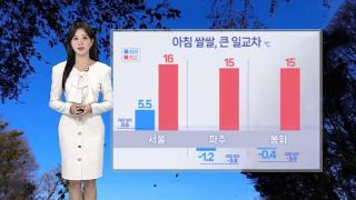 [날씨] 쌀쌀한 아침, 큰 일교차…한낮 가을 날씨전국 하늘 맑게 출발했습니다.늦은 오후까지 5mm 미만의 비가 살짝 내리는 제주를 제외하고는 종일 하늘빛은 대체로 맑을 텐데요.다만 이 맑은 하늘 아래 복사냉각이 활발히 이루어진 데다가 북쪽의 찬 기운이 여전히 남아있어서 날은 쌀